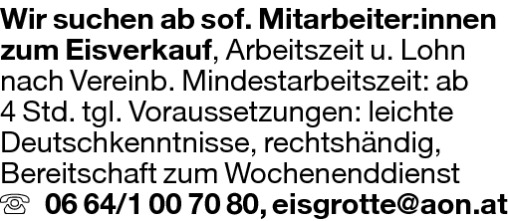 Mitarbeiter:innen zum Eisverkauf gesucht